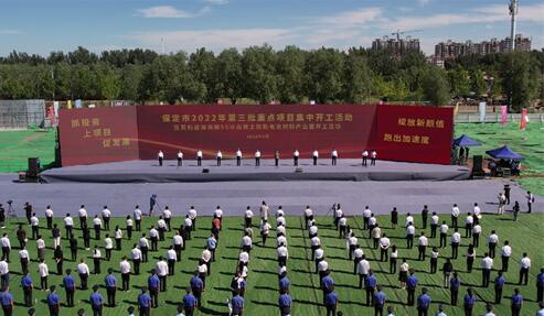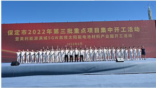 8月16日,英利能源舉行年產5GW高效N型太陽能電池材料產業園項目開工儀式。保定市委書記黨曉龍,市委副書記、市長閆繼紅等市領導;英利能源董事長尹緒龍、總經理熊景峰出席開工儀式。