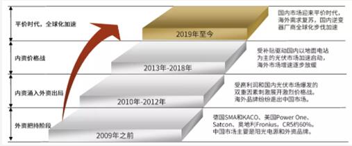 回顧逆變器的發展歷史,2003年陽光電源推出中國首臺擁有自主知識產權的逆變器。2012年全球出貨量前十中只有陽光電源一家中國企業。2015年以來,華為、陽光電源和SMA的出貨量前三地位穩定,而行業腰部企業市場份額接近,競爭更為激烈。在激烈的角逐中,中國逆變器企業逐漸崛起。如今,陽光電源、華為等品牌逆變器穩扎穩打,在國際站穩腳跟。歷經激烈競爭、行業迭代,我國逆變器企業實現從無到有、從有到強的強勢蛻變。