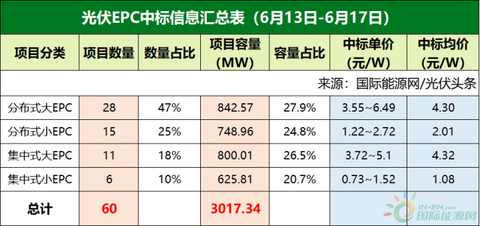 分布式大EPC均價4.3元/W!集中式大EPC均價4.32元/W!本周6.57GW光伏招中標項目【項目·周分析】