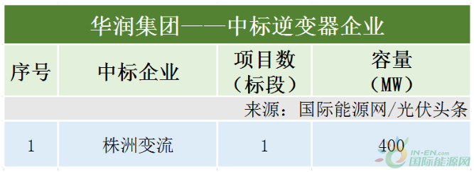 華潤集團有1個項目(標段)定標,容量為400MW。株洲變流成為最終贏家,確定中標該項目