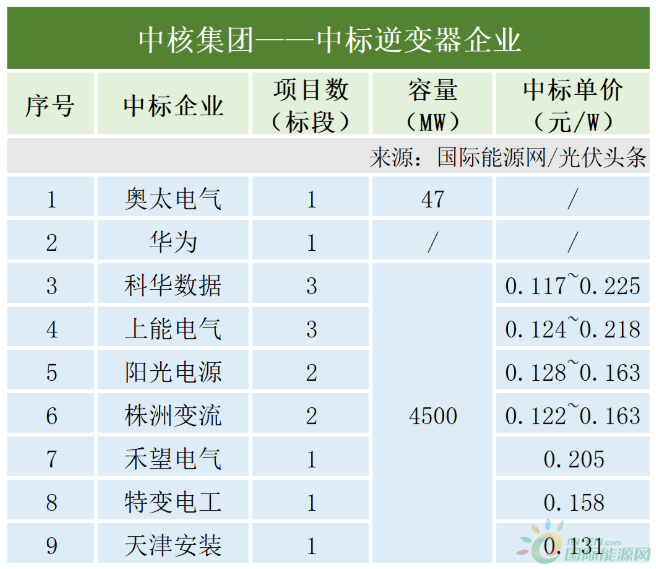此外,華為與山東奧太電氣也中標了中核集團的逆變器采購項目。具體中標情況如下: