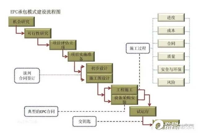 工程總承包模式(Engineering Procurement Construction),又稱設計、采購、施工一體化模式:在項目決策階段以后,從設計開始,經招標,委托一家工程公司對設計--采購--建造進行總承包。在這種模式下,按照承包合同規定的總價或可調總價方式,由工程公司負責對工程項目的進度、費用、質量、安全進行管理和控制,并按合同約定完成工程。EPC有很多種衍生和組合,例如EP+C、E+P+C、EPCO等。其中 EPC+O即設計、采購、施工及運營一體化的總承包模式, 即總承包方擁有該項目設計、采購、施工權,和負責對設備的運營和維護。