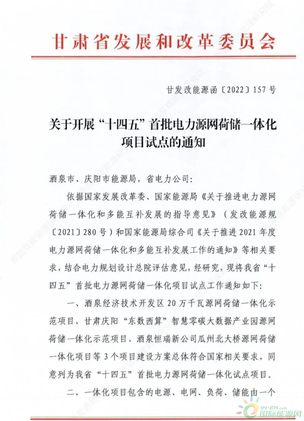 其中,在此之前,甘肅省慶陽市曾下發(fā)了擬分配《“十四五”第二批風(fēng)電光伏項(xiàng)目建設(shè)指標(biāo)》,慶陽“東數(shù)西算”智慧零碳大數(shù)據(jù)產(chǎn)業(yè)園源網(wǎng)荷儲(chǔ)一體化示范項(xiàng)目為其中一個(gè)項(xiàng)目,由中國能建下屬的中國能建中電綠能(慶陽)新能源有限公司投資。